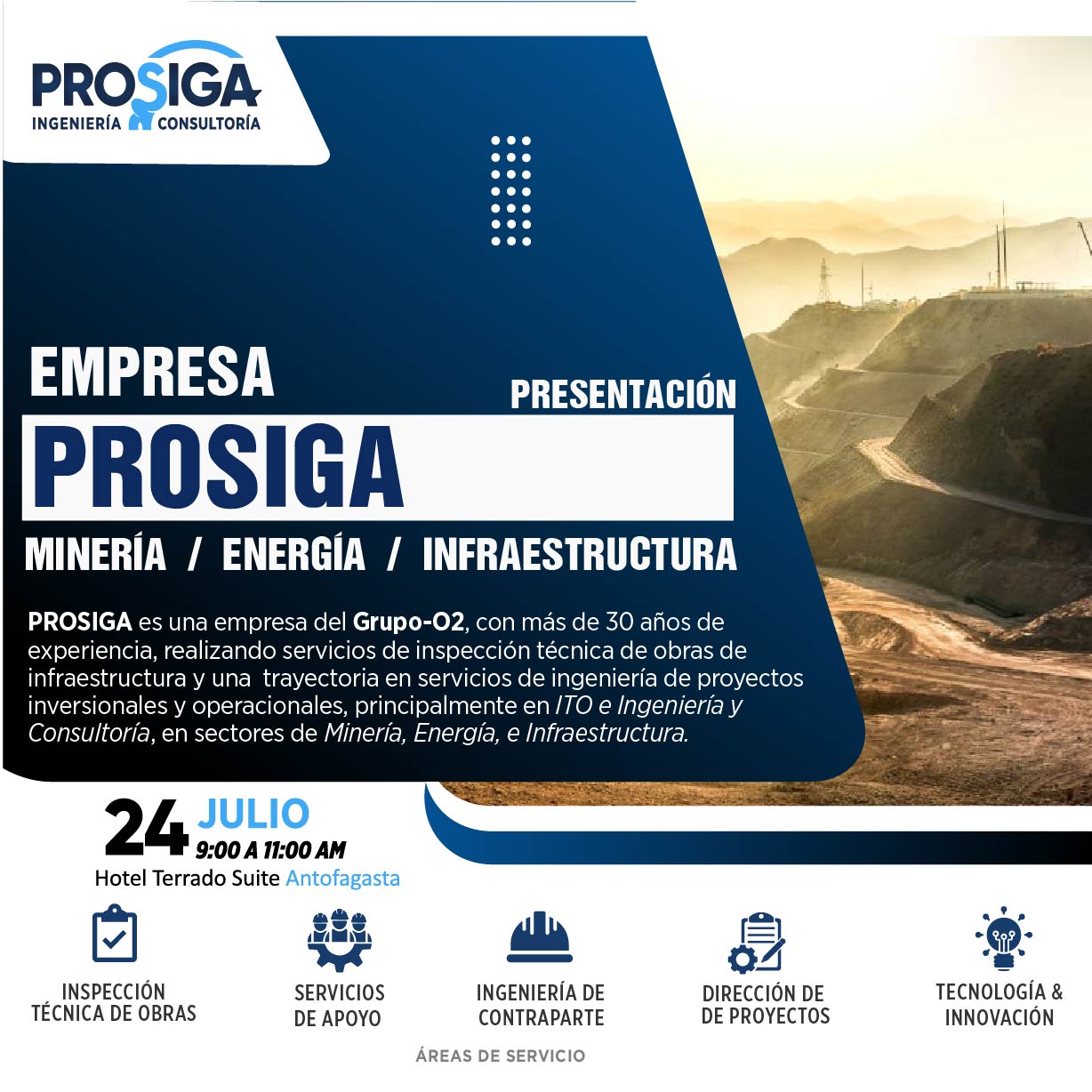 PROSIGA Ingeniería y Consultoría, es el resultado de la unión de las empresas PROSIGA • FARAGGI y PROSIGA • OHS, y cuenta con más de 30 años de experiencia en el mercado. Estamos especializados en servicios de Inspección Técnica de Obras, Ingeniería de proyectos inversionales y operacionales, así como en Consultoría en Ingeniería para los sectores de Minería, Energía, Industria e Infraestructura.